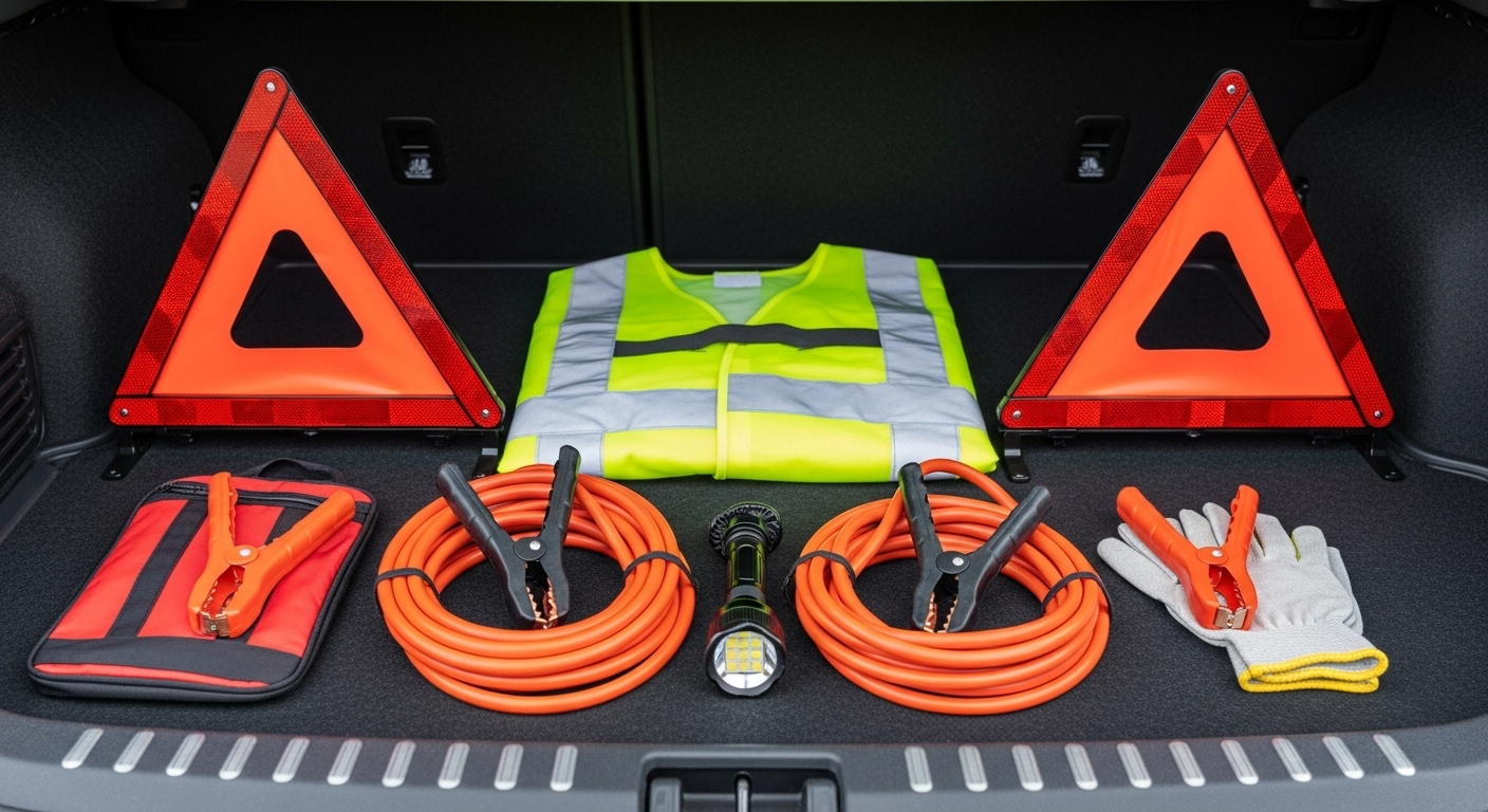 - Linterna, guantes, cables pasa-corriente y botiquín.