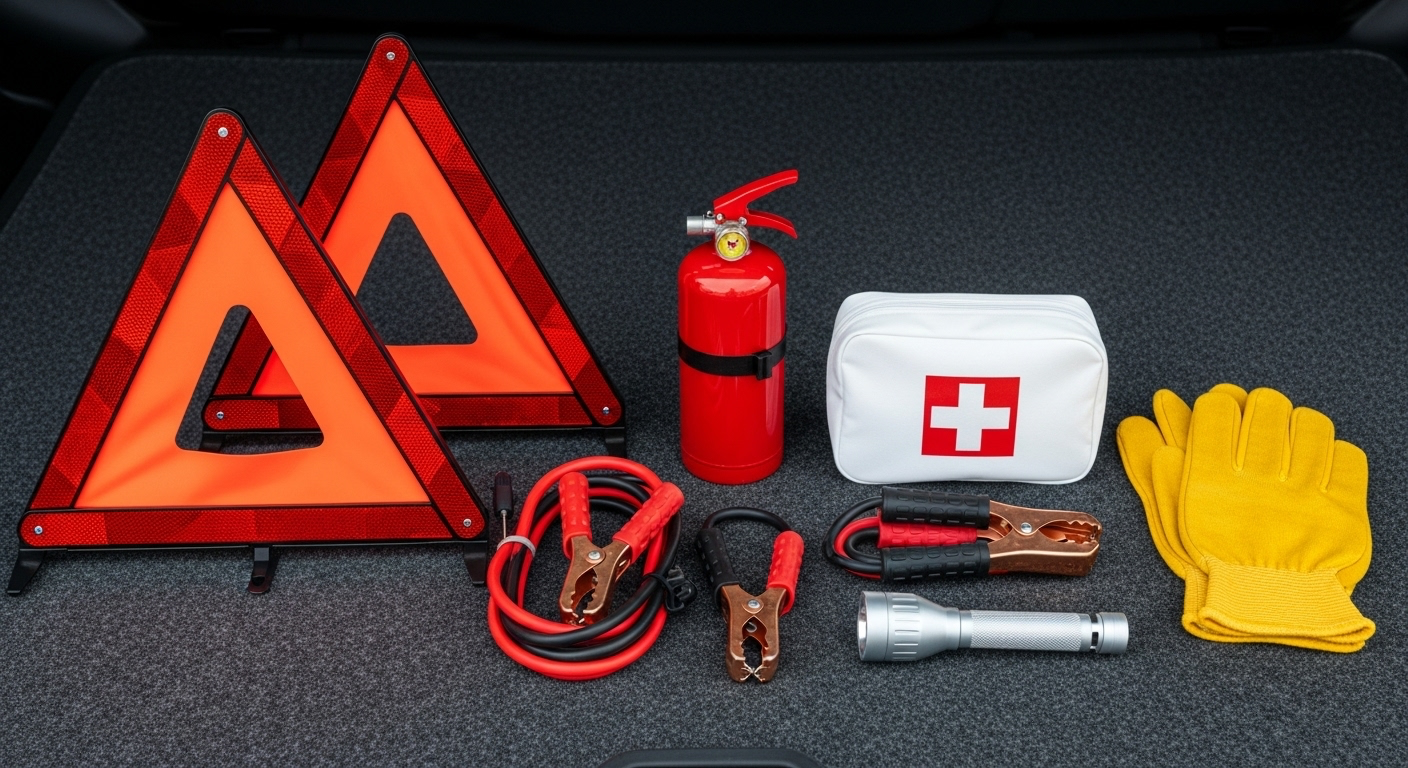 - Triángulos, extintor, botiquín, cables y herramientas ✔