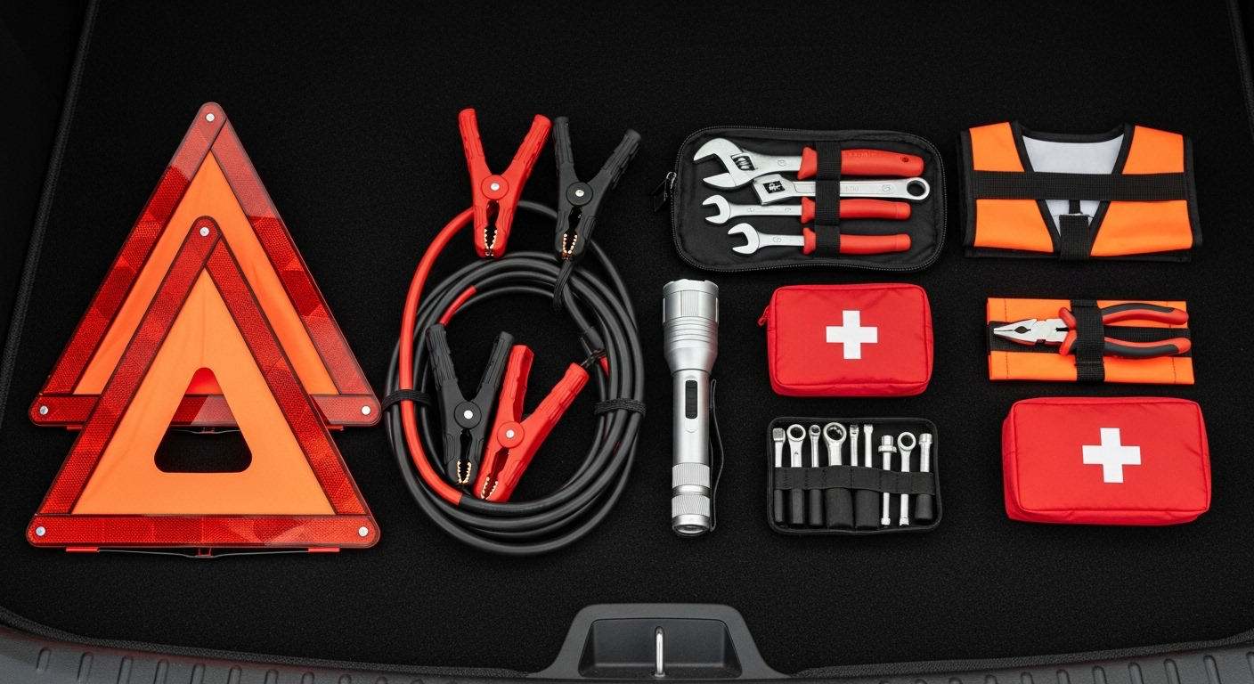 - Triángulos, linterna, guantes, botiquín, cables pasa-corriente.